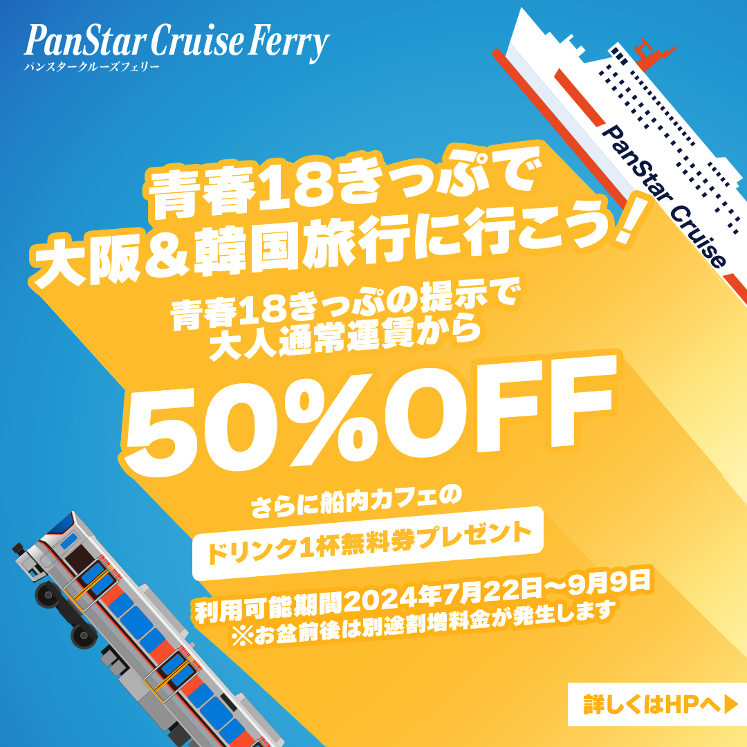 パンスタークルーズフェリー 青春18きっぷのチケット提示で運賃半額キャンペーンを実施